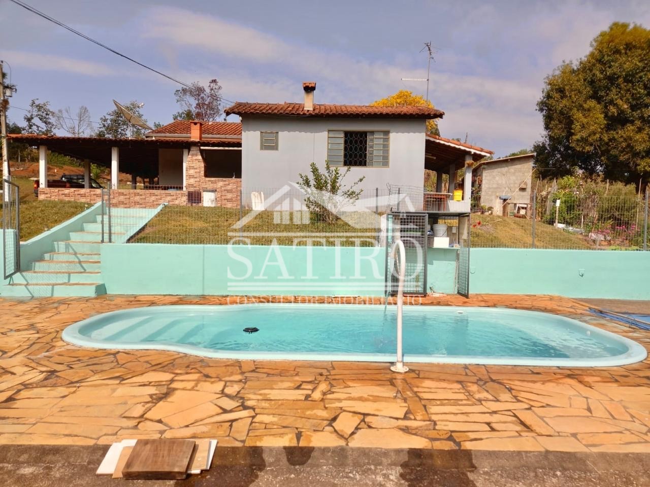 Observe Essa Chácara! 5000m de área 2000m de área murada Área construída: Sala (Pé direito alto) Cozinha Planejada 03 Dormitórios sendo 01 suíte Banheiro social Área ampla gourmet Churrasqueira Piscina Acabamento diferenciado Lago para pesca Amplo gramado Estuda proposta para troca 400m de estrada de terra